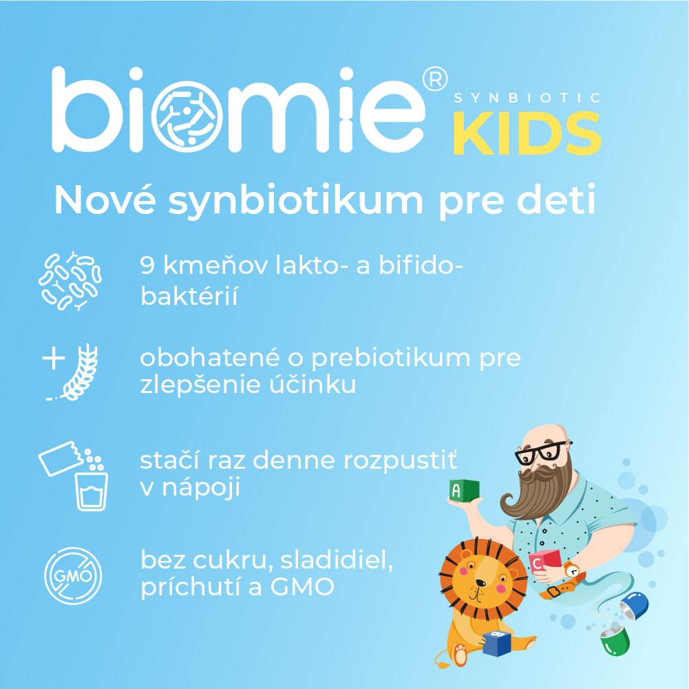 Биоми Кидс – это многоштаммовая синбиотическая формула, состоящая из 9 штаммов полезных живых сублимированных бактерий, отобранных нашими экспертами, для детей от 1,5 лет, в высокой суточной дозе 5 миллиардов колониеобразующих единиц и натуральной клетчатки инулина.