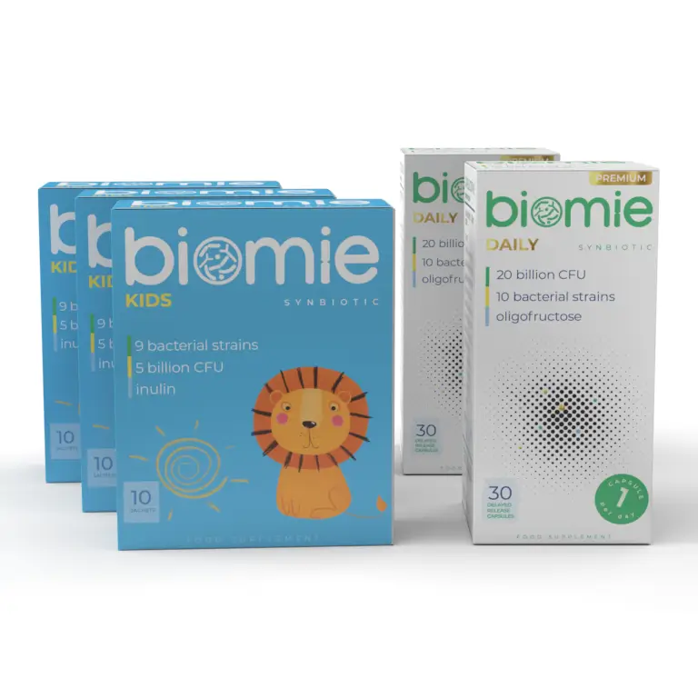 Удобная упаковка содержит: 2 упаковки Биоми Дейли Прмиум 30 и 3 упаковки Биоми Кидс.